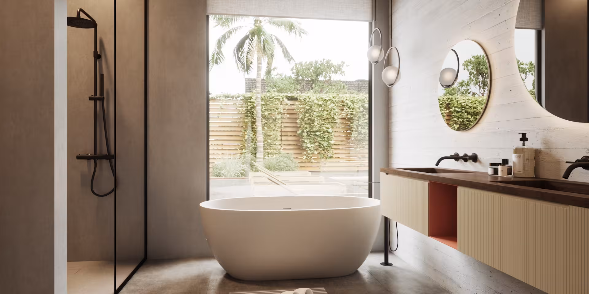 Modern finishes, deep soaking tubs, and sleek fixtures designed for relaxation